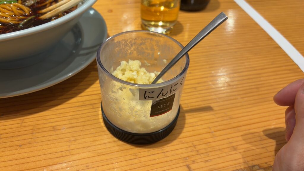 ガッツリえびすこさんのニンニクは、荒いみじん切りタイプのニンニクなのでニンニクの主張が強くなります。