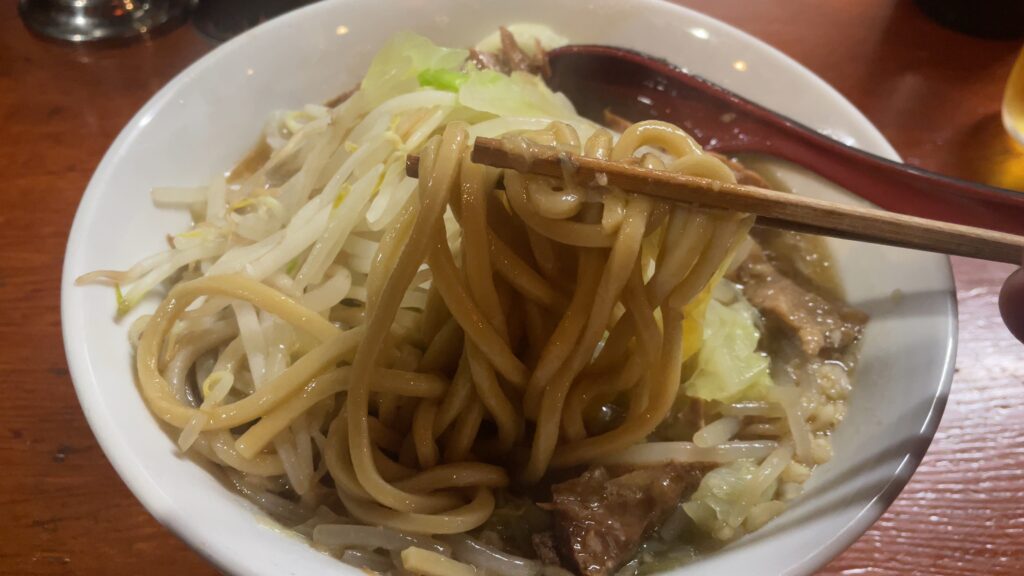 次は麺。見た通り、麺はちゃんと二郎系ラーメンで外すことができないワシワシ系の麺です。